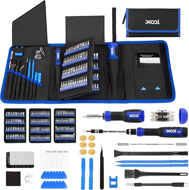 XOOL’s 200 in 1 Precision Screwdriver Kit includes 164 magnetic bits, a flexible shaft, and extension rod. Ideal for repairing computers, iPhones, laptops, PS4, Xbox, and Nintendo, this durable kit ensures precision and ease for electronics enthusiasts or professionals tackling diverse repair tasks.